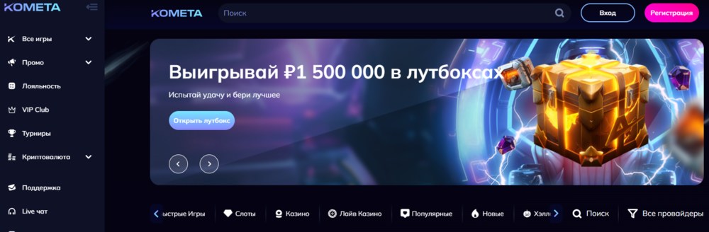 При помощи зеркального линка можно перейти на сайт Kometa casino и продолжить выполнять привычные действия – играть в слоты, использовать бонусы, активировать промокоды, выводить выигрыши.